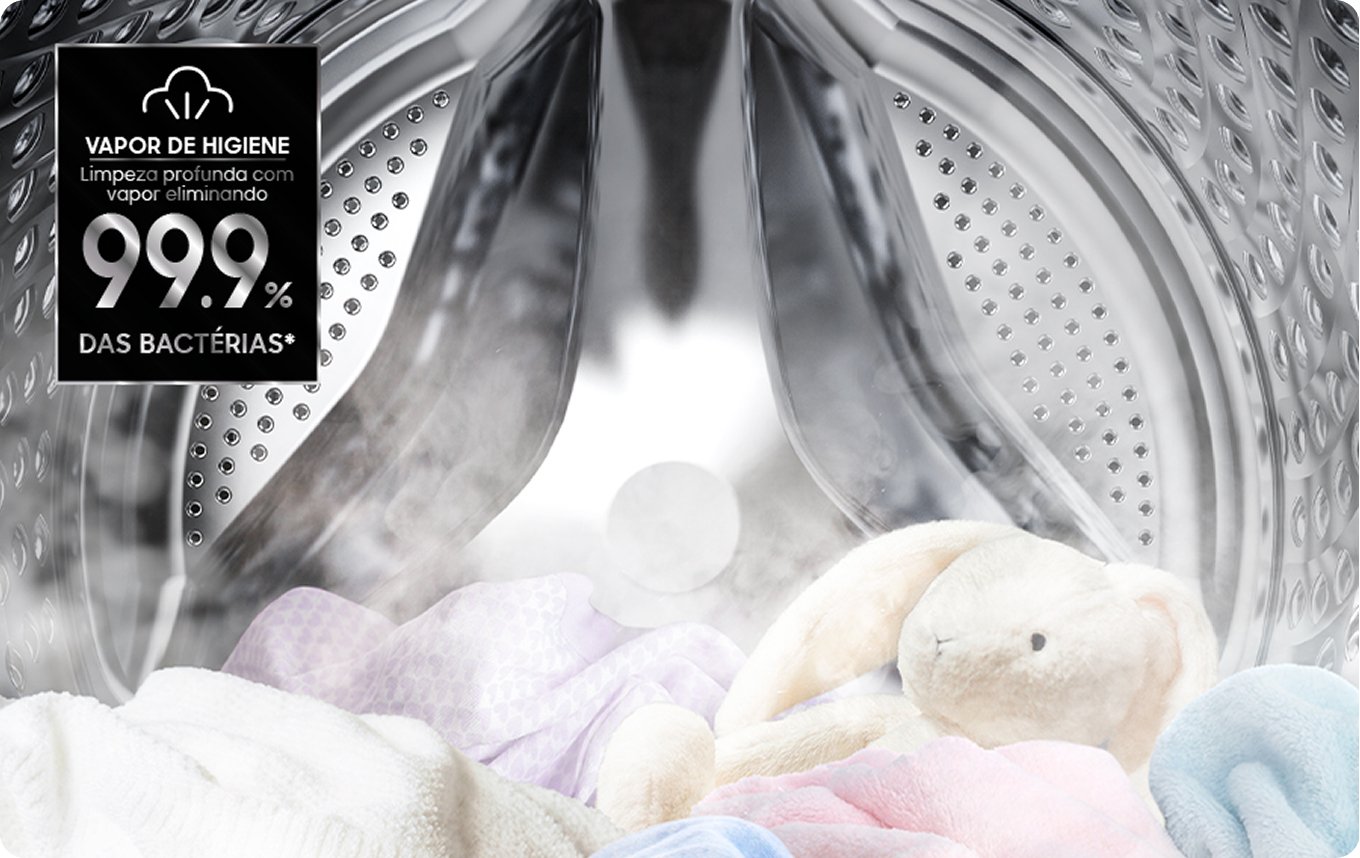 Roupas sempre bem cuidadas com a máquina que lava, seca e esteriliza3 a seco. Com o ciclo de lavagem a seco, Air Wash, você elimina odores indesejáveis, além de até 99,9% das bactérias e alérgenos que causam problemas respiratórios, sem usar água ou sabão. Ideal para proteger sua saúde e da sua família.